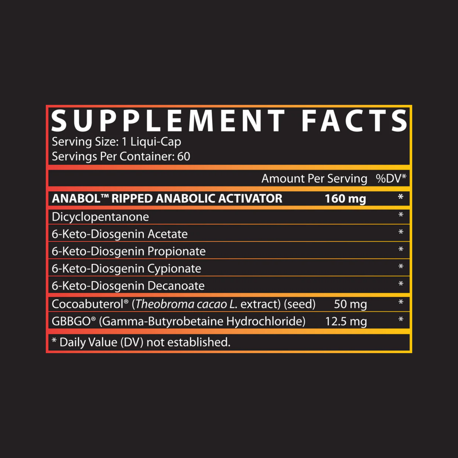 Pack on mass and keep a hard, shredded look - with ANABOL RIPPED - the cutting-edge formula designed for those who want to build serious muscle while shedding unwanted fat. This two-in-one powerhouse combines hardcore muscle-building compounds with two effective fat-burning agents - so you can carve out a lean, muscular body. With its advanced liquid-cap technology - ANABOL RIPPED ensures rapid delivery and absorption of its potent ingredients. They help foster an optimal anabolic environment for enhanced muscle growth and recovery - but also ignite your metabolism for more efficient fat loss. Completing the 1-2 punch combo of the ULTIMATE ABOL STACK.